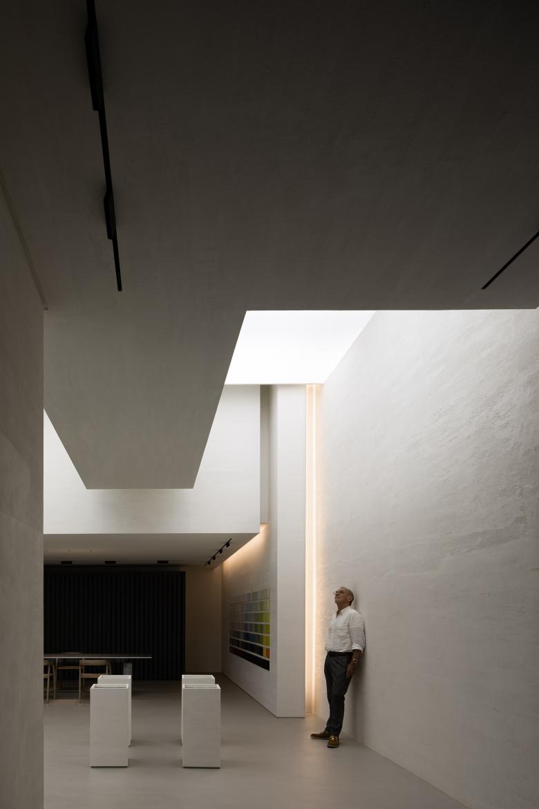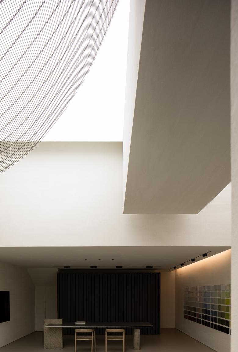 The showroom offers a unique aesthetic, looking like an art gallery. The spatial design highlights the artistry and quality of the space, while also accentuating the close fusion of materials and space.