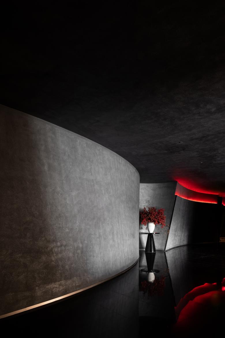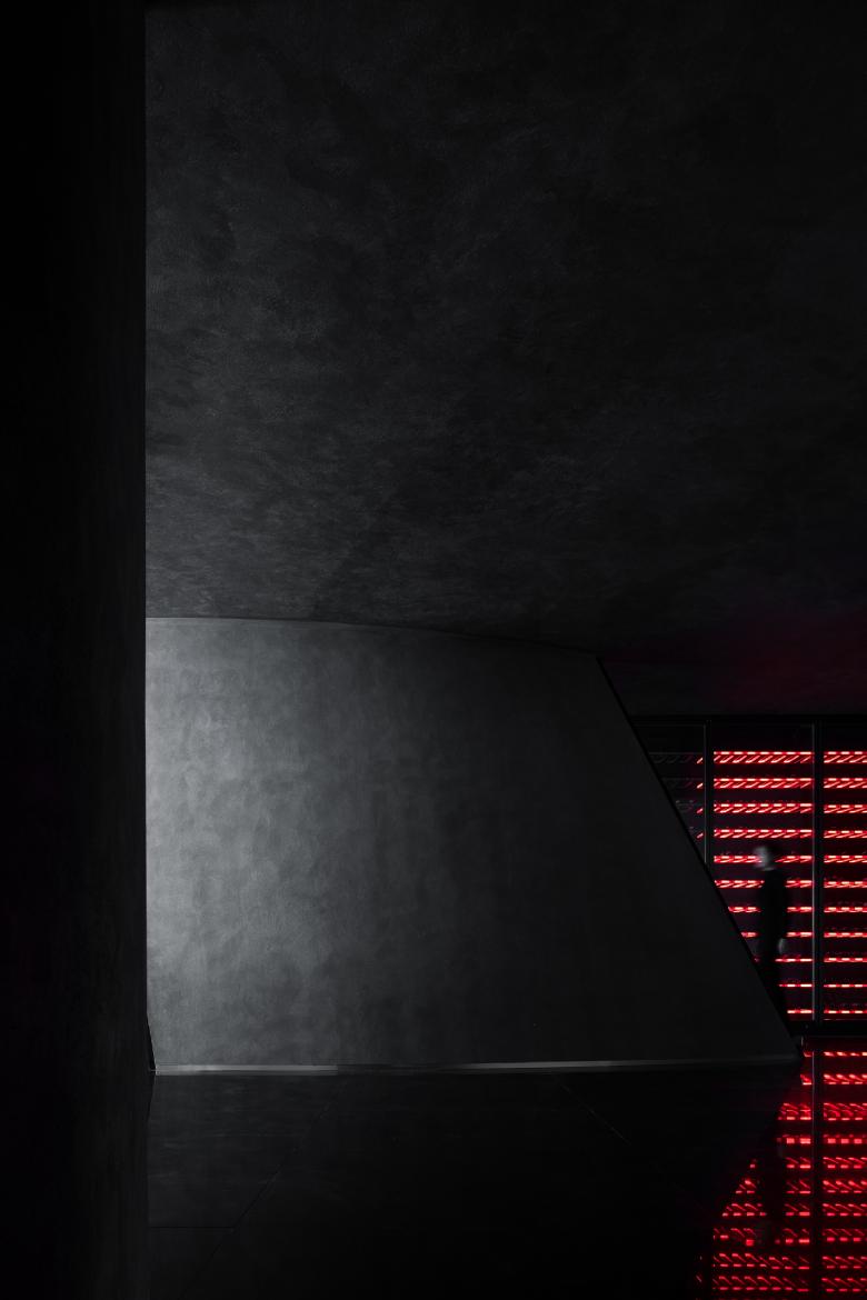 The space features concise lines as well as passionate red light. This shade of red makes people think of a flaming oven or boiler that seems impulsive and signals danger. AD ARCHITECTURE believes that light has always been a very conspicuous material, and should be presented as an entity visible in the air. The design team hoped to make use of the materiality of light to convey the inner world of humanity while stimulating mysterious, quiet, and illusory yet silently intense emotions.