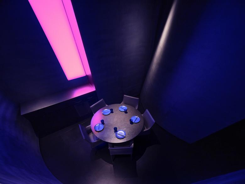 The bold psychedelic lighting design in the bar counter area is intended to strengthen spatial emotions. The inner spirit of jazz and punk fills the space with passion, whilst generating a soft yet radical romantic rhythm.