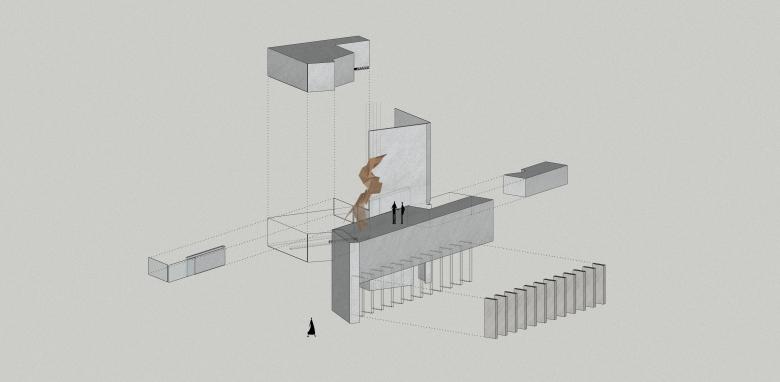The concept of the spatial formation is "a broken, hollowed sculpture", which turns reality into an illusion. An exaggerated expression like this cannot be made without the power of art.