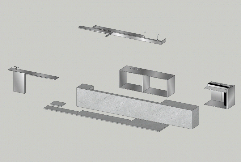 Main Materials: Stainless Steel, Japanese Paper, Acrylic, Moorgen Products, Metal Mesh, Sintered Stone Panel, Italian Handmade Paint, Bespoke Wooden Flooring
