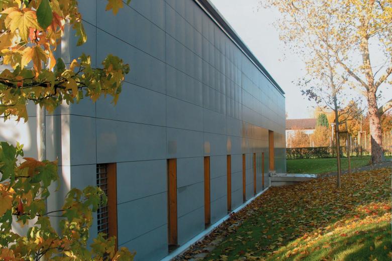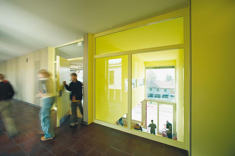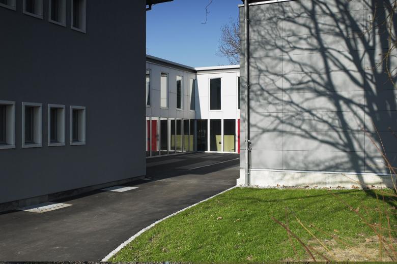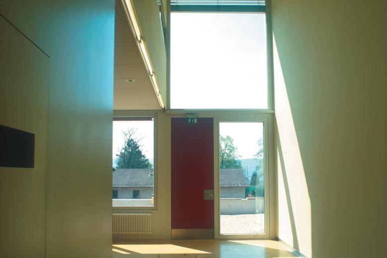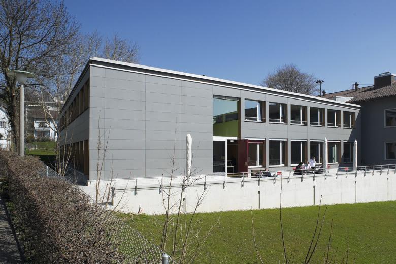 Die Schulhausanlage Lachenzelg / Imbisbuhl wurde in zwei Bauphasen in den Fünfzigerjahren nach Entwürfen des Architekten Dr. Roland Rohn realisiert. Die grosszügig konziperte Schulhausanlage mit klaren Aussenräumen belässt auch für die Zukunft einen angemessenen Planungsspielraum. Der Standort des Erweiterungsgebäudes im Bereich des ehemaligen Singsaals wurde so gewählt, dass auch spätere Bauvorhaben auf der Nordwestseite des Areals möglich sind. Das bestehende volumetrische Konzept baut auf einem Hauptbaukörper mit fingerartigen in den Umraum ausgreifenden Sekundärbauten auf. Der Erweiterungsbau ordnet sich diesem Raumkonzept unter. Der Neubau ist als reiner Holzbau konzipiert, welcher aus vorfabrizierten Rohbau-Elementen zusammengefügt wird. Der Erweiterungsbau soll insbesondere eine Neuausrichtung der schulischen Nutzung ermöglichen. Er kann mit seinem Raumangebot klassenübergreifende Bedürfnisse abdecken.