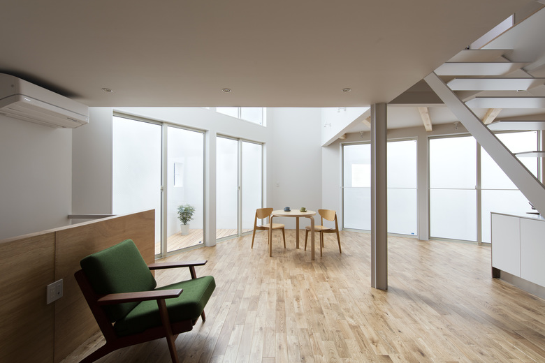 The house is built in a neighbor where lots of similar shape and size are prevalent and within the lots, old and new houses are built almost fully within the lots. The narrow street of four meters in width in front of houses is a community street whose ownerships are shared by the owners of the houses facing the street. In this neighborhood where houses as well as relationships of the residents seems close, some households are living for decades and some have just moved recently. The age groups are diverse and different life styles co-exist.