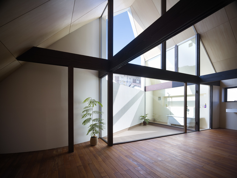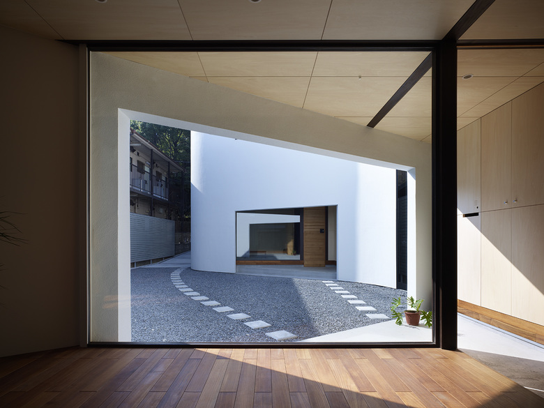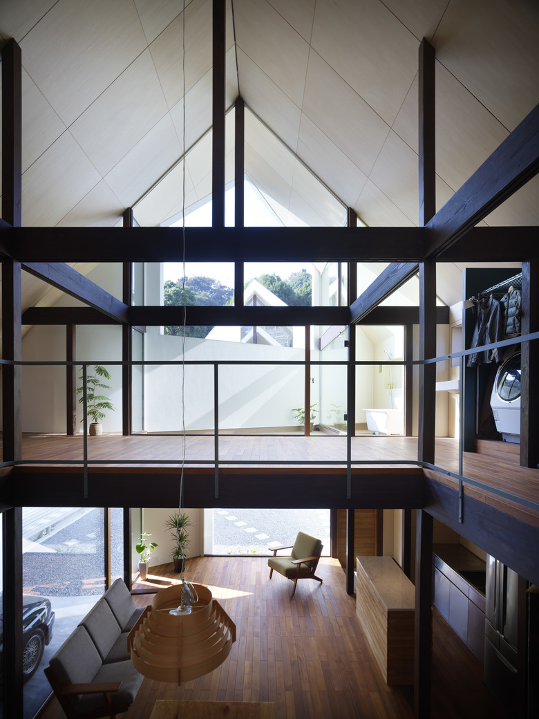 The wood structures and finishing materials of two houses are standardized to emphasis the relations of two volumes being originally from “one great volume” and that they are one though apart. Carved volume in the middle became a courtyard leading to the approach to two houses.