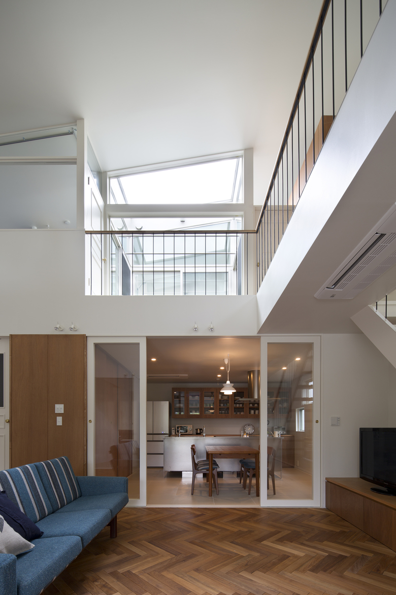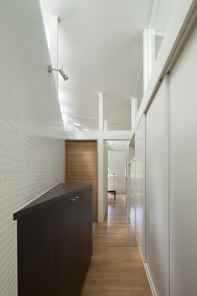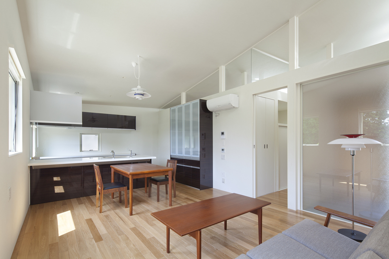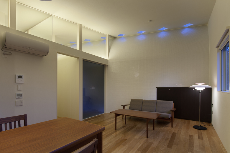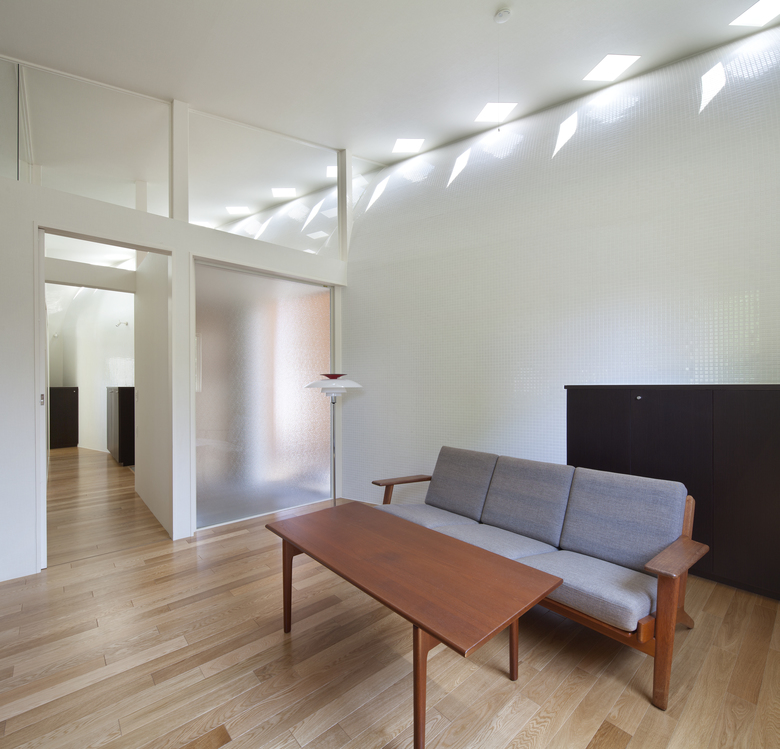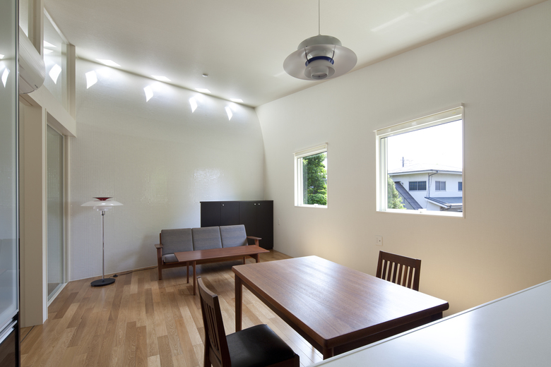 Former national route has heavy traffic, thus building A and B do not have windows on the north. Windows facing the neighbors on the east and west sides are small and minimized, whereas the windows facing the garden are large. Both building A and B have courtyard and skylight with slanted ceiling and curved walls to give varied interior scenes.