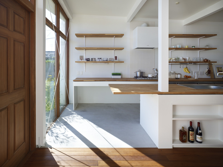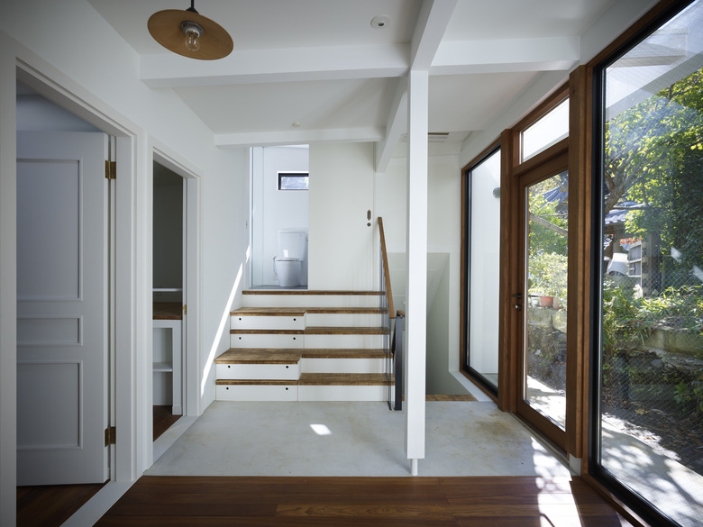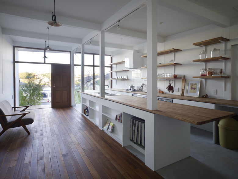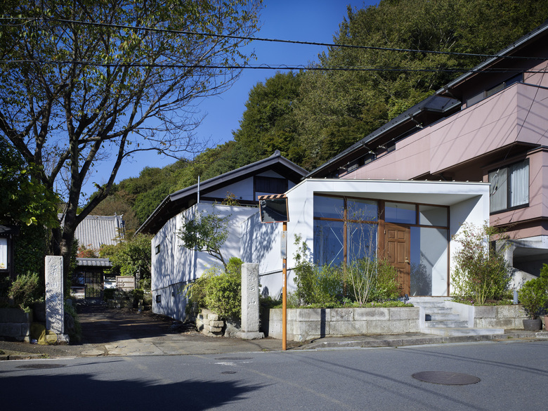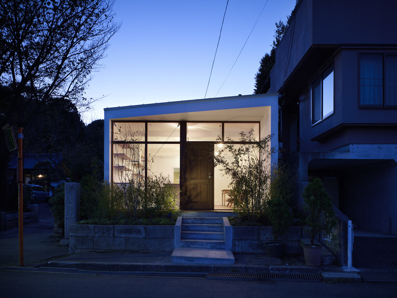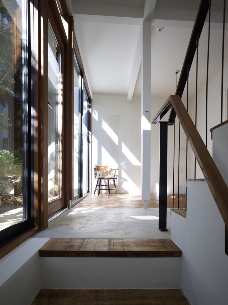 The household of the client consists of three, a husband who is musician, a wife who is magazine editor and a child. Parents of the husband run temple and at the same time run kindergartens and nurseries, making the most of the vast premises of the temple. The couple are also engaged in this family business.