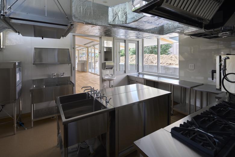 Inside the garden, a route has been set around the hill for cars to go through the site from the entrance side to the bus stop at the frontal road. The range of activities is expected to expand as various functions such as a mobile tea room and a camper for overnight childcare are introduced and “plugged in” to the nursery school. At the school’s first anniversary celebration, food trucks came and many people lined up for food, international families and local residents visited, and cheerleading demonstrations by students were crowded with many people.