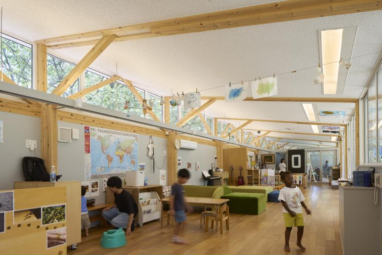 On a separate note, this is a project funded by crowdfunding, whose target amount was achieved in a matter of 17 seconds after the call started, and in the end, more than 1,000 investors applied for the project, raising nearly three times the goal. At the design meeting, the university president said, “It’s been our long-standing desire to build a nursery school at the university,” which I left me an impression that inner circle of the university which has more women by gender ratio had much expectation to the project. However, the features of this nursery school lie in creating new values and excitements around children while making the most of the university environment not just serving to their need for childcare. We feel that the expectation for the nursery school to provide more than its primary role of childcare against the backdrop of the society in general is coming from far beyond the framework of the university.
