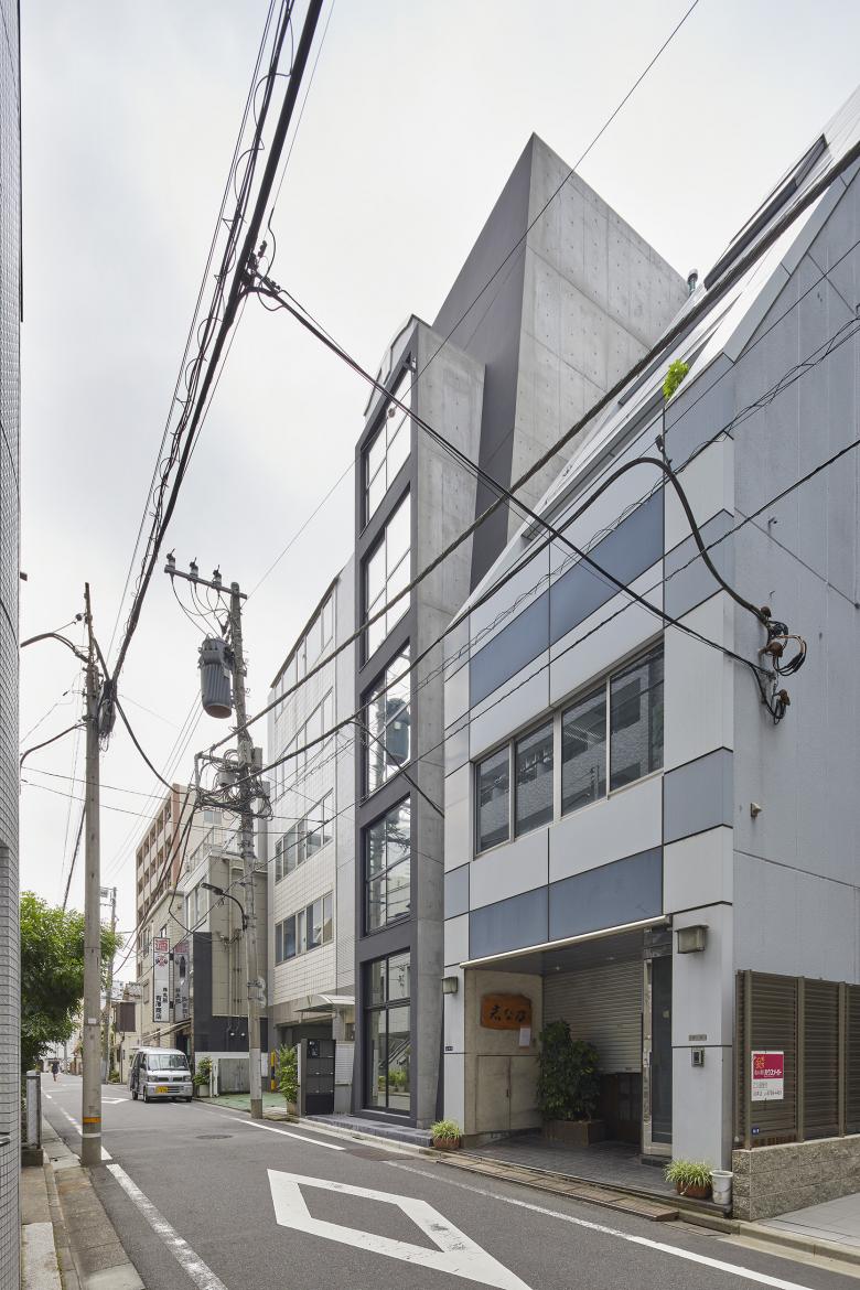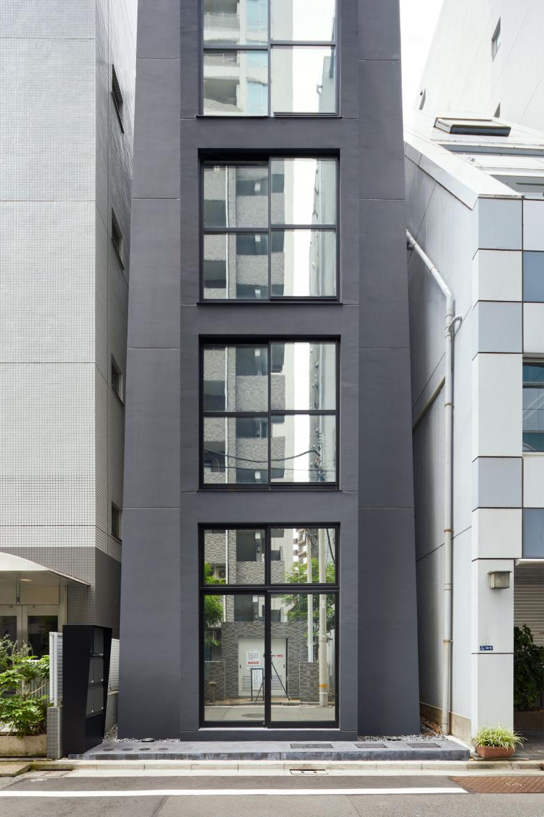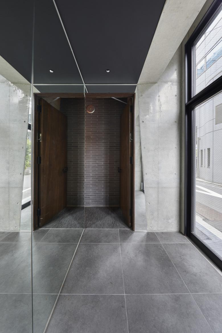 Initial request from the client was to set different themes on each floor to enjoy the combination. If acute setback from third floor and above were inevitable, fourth and fifth floor would have been too small to make practical use of space, much less have theme. Tilting the façade by 4.3° from the foot of the building could circumvent the issue. Furthermore the combination of upright center piece adds more space to each floor giving unique interior and exterior appearance.