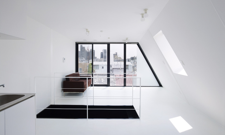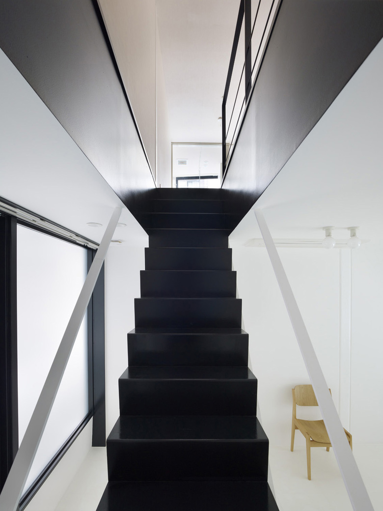 The direction of the units are turned 90 degrees depending on the environment of each floor. Units on the first floor are open to the side to avoid frontal road with a lot of traffic. Units on the second and third floor are open to frontal road to avoid adjacent buildings. Units on the fourth floor are open to the side as view is open over the roof of adjacent buildings. The units on each floor are stacked in X・Y・Y・X direction in coordinate system. Each floor in the same maisonette gives different impressions in terms of interior and direction.