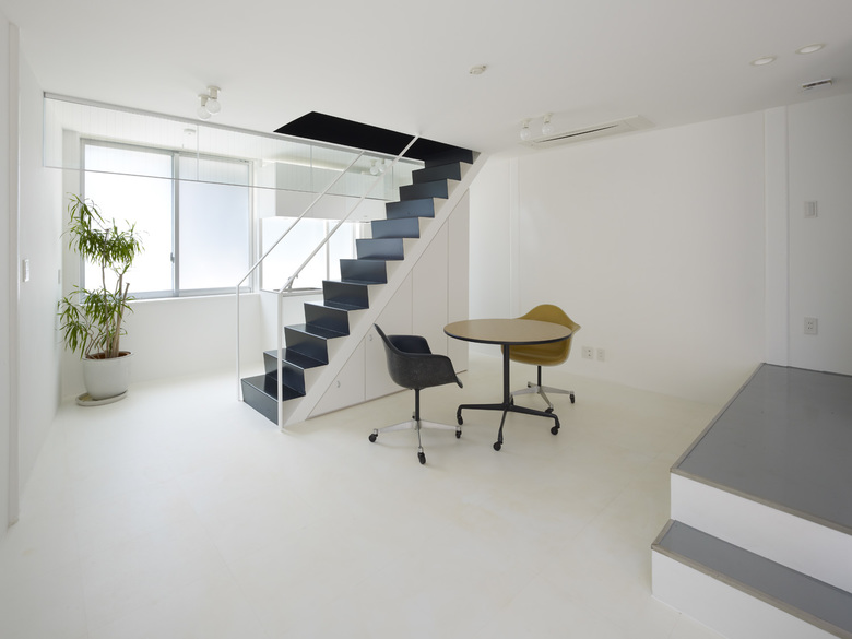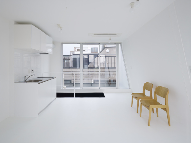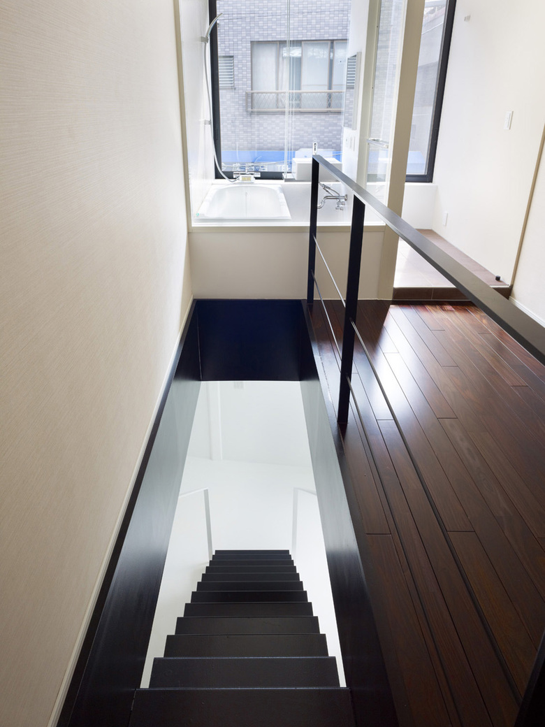 Considering such conditions, units on the first and fourth floor with simple, open and monotone interior compose maisonette with units on the second and third floor with brown tone relaxing interior. Units on the first floor which face the street can be used as SOHO. Units on the second and third floor are studio type apartment. Units on the fourth floor are airy and have a good view.