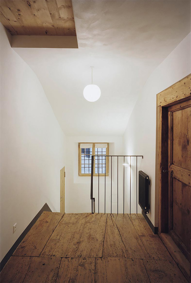 Die qualitätvolle und für die Region typische Grundrissanlage des Bestands sowie die jahrhundertealte Bausubstanz bildeten Ausgangspunkt und Rahmen des Entwurfs: das Vorhandene wurde instand gesetzt und wo nötig ergänzt, neue Interventionen in einer Logik des Weiterbauens der Geschichte des Hauses hinzugefügt.
