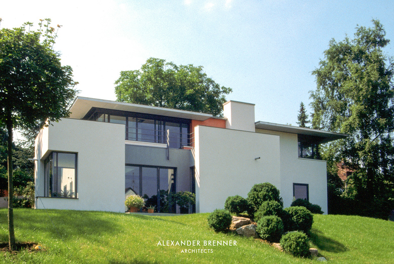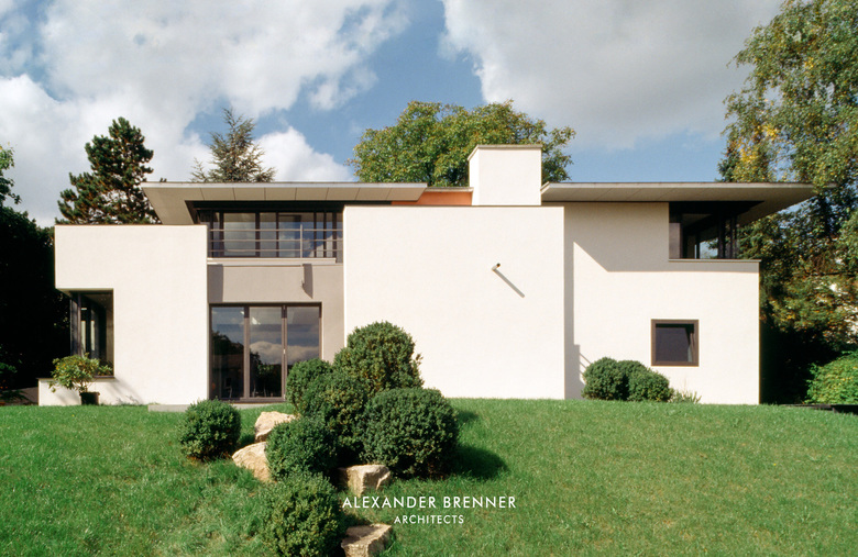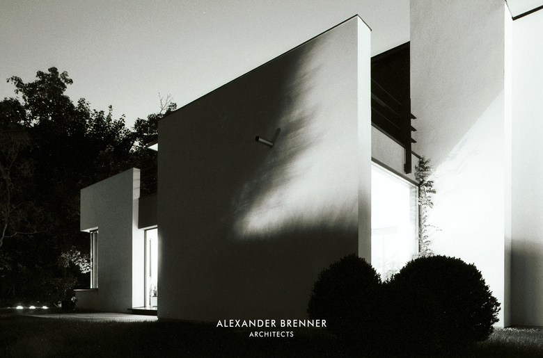 This house is situated on the Wernhalde ridge, among a development of free-standing detached houses typical of hillside locations in Stuttgart. The terrain rises 3 metres above the access road and is part of a former villa estate. The tea house on the road above the garage dates from the early 20th century. Here, the path ascending towards the house starts, leading around the house and ending at the entrance at the back. On the southwest side, the old trees and a new, curved wall panel create a courtyard-like exterior space, which opens onto the edge of the wood on the opposite side. The large room on the ground floor, which consists of various spatial zones merging into one another, is also oriented towards this “opposite”. The individual zones are characterised by the alternation of light and dark, high and low, narrow and wide. This creates a spatial continuum with a variety of spatial densities. A large “window” connects the ground floor with the underground “free space”, which is situated 6 metres deeper. This area is designed to allow various uses for a variety of purposes, both professional - as a venue for lectures, seminars etc. – and for the exhibition of classic racing cars, one of the client’s passions.