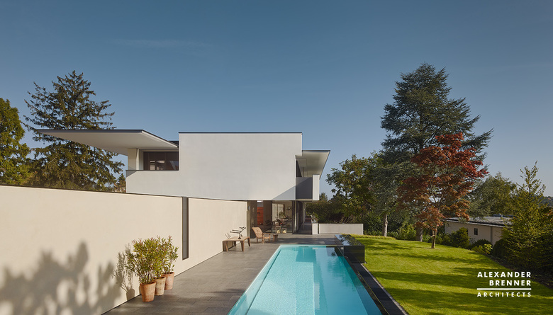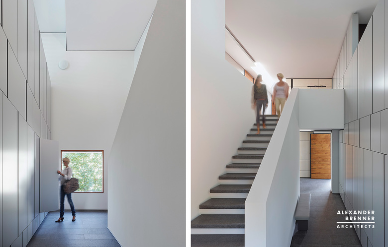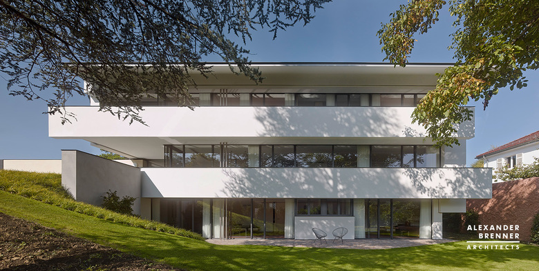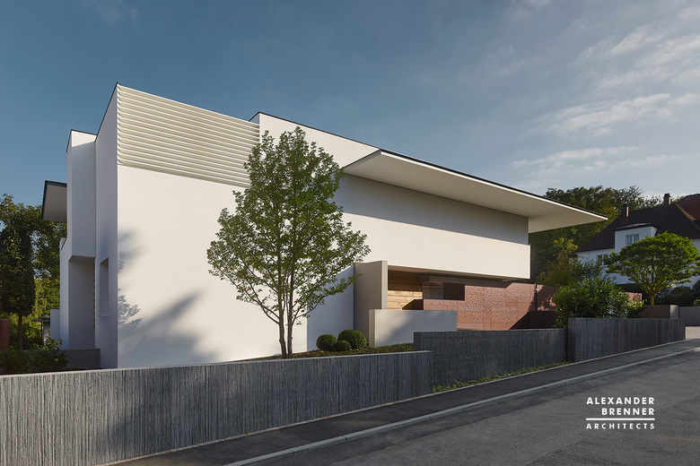 The site is situated along a residential road with buildings primarily dating from the 1930s as it is typical for Stuttgart’s hillside locations. The residence relates to the down-to-earth quality and the scale of the neighbouring two-storey, cubic houses, but the façade facing the street is, owed to modern living requirements, mainly closed.