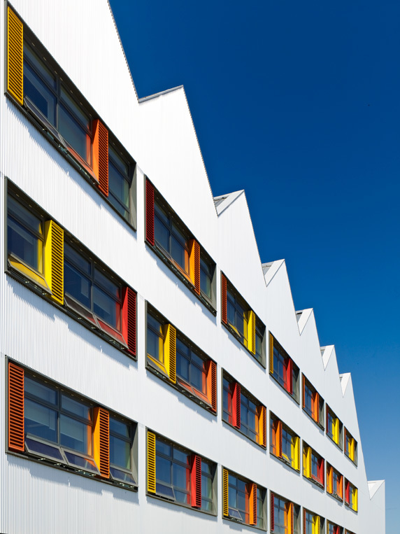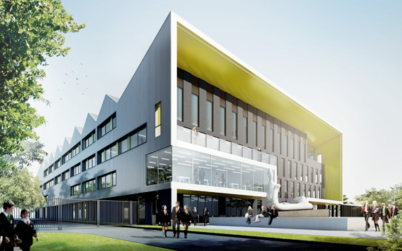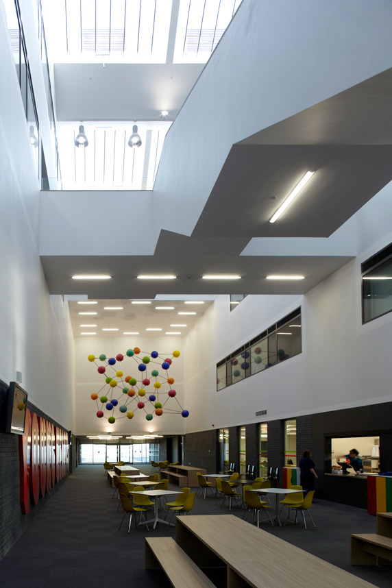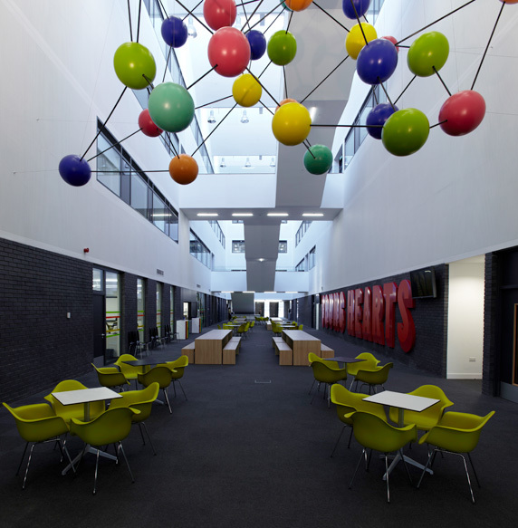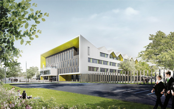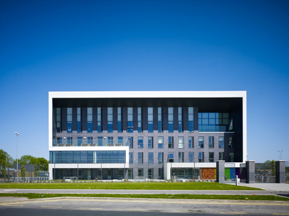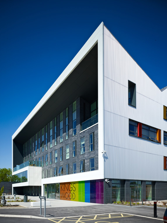 Kingswood Academy is a new secondary school in Bransholme, a suburb in the north-eastern outskirts of Kingston Upon Hull. A four-storey saw-toothed super-shed announces itself with a profiled roof and largely-glazed south-western face to greet a new public piazza at the front of the site. Internally, the ground-floor plan is defined by a central street lined with a series of open plan studios for group and independent learning. The inner street’s dramatic main staircase simplifies circulation and, in rising up through the central multi-storey atrium, creates both spectacle and opportunities for passive surveillance. Robust and bold, the college caters for 1,300 students and 128 staff and incorporates a number of community facilities including training rooms, crèche, café and sports hall.