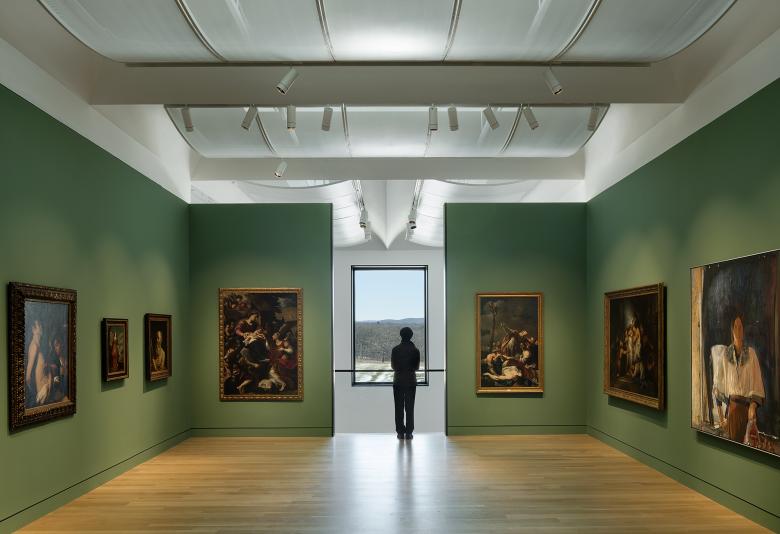 The building’s interlocking volumes create double-height pavilions in the lobby entrance and galleries. Varying in height and proportion, the galleries are scaled to serve the diversity of genres embodied in the Palmer’s collection, which includes American, European, African, and Post-war modern and contemporary art, and holdings of ceramics and contemporary studio glass. Visitors are invited to meander through the museum, which will have double the space for exhibitions and scholarship, exploring the collection and creating new connections in an experience punctuated by scenic overlooks and enfilade axes capped with distant views.