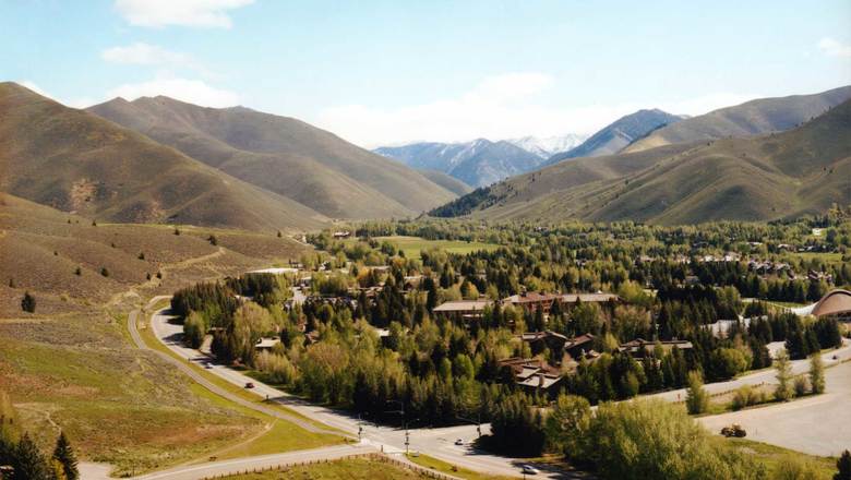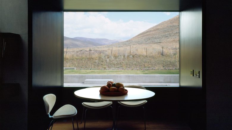 The Sun Valley Residence lays in a rolling meadow of native grasses and wildflowers at the base of a small hill, surrounded by an established residential neighborhood and the Sawtooth Mountains beyond.