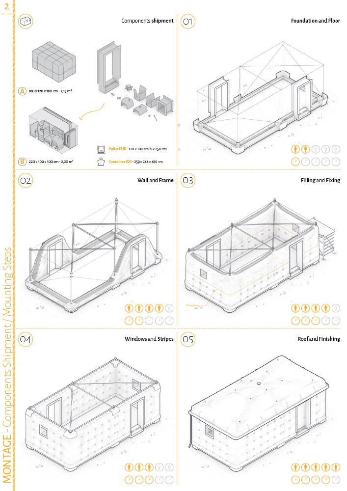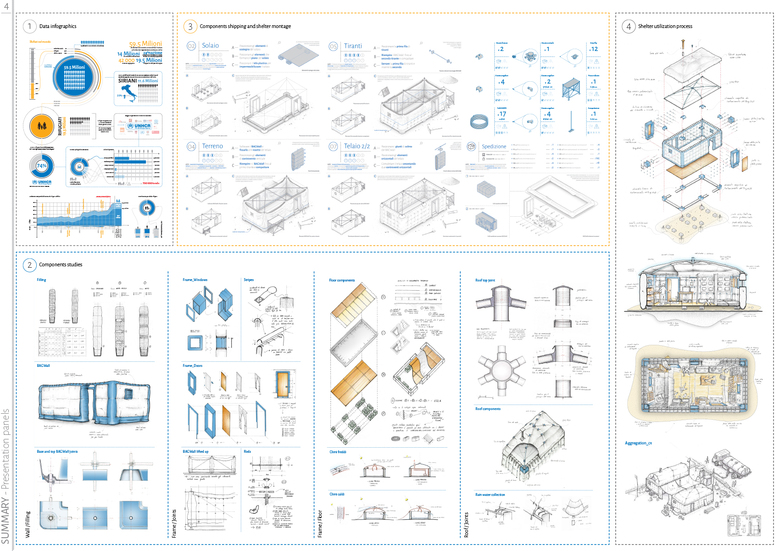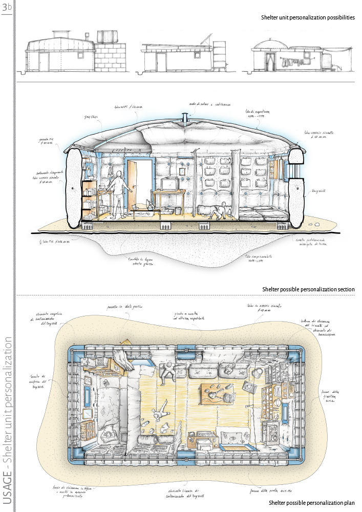 To design a shelter that can improve tent’s performances and efficiency by replacing it after the first emergency phase and that can give an adaptable base on which build a dwelling appropriate to climatic and cultural context as well as to local resource availability has been the main goal of this project.