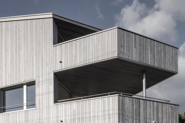 Im Inneren wurden sämtliche Decken als farblos lasierte Holzelement-Platten sichtbar belassen. Aussen wurde der Holzbau mit einer hinterlüfteten, silbergrau pigmentierten Holzschalung beplankt. Die zurückhaltende Farbgebung verleiht dem Neubau einen zeitgemässen, architektonischen Ausdruck und schafft Assoziationen zum traditionellen Holzbau.