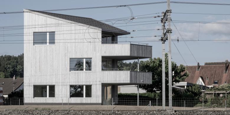 Der Ersatzneubau wurde als vorfabrizierter Holzelementbau konzipiert. In nur gerade einer Woche wurde das stattliche Gebäude aufgerichtet. Die sehr kurze Bauzeit ermöglichte uns den Verzicht von aufwendigen Sicherungsmassnahmen entlang der Bahngeleise.