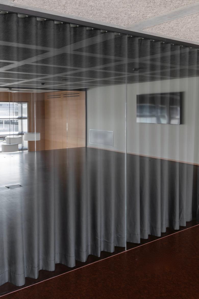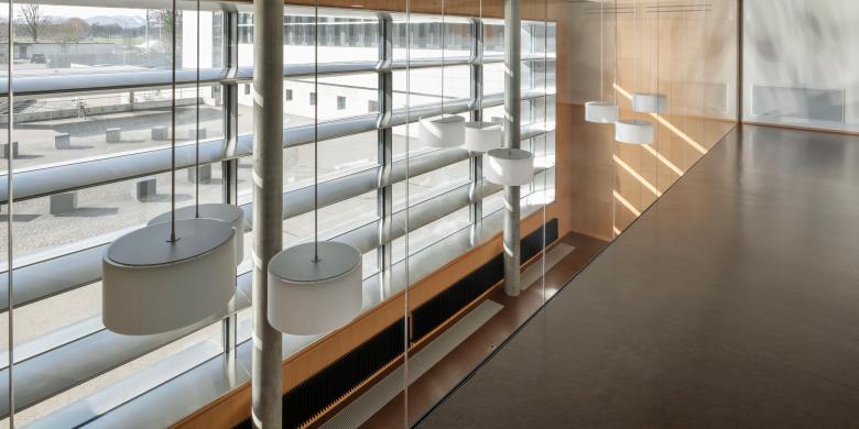 Der zweigeschossige Raum der Verkehrsleitzentrale wurde mit einer Galerie erweitert, welche sich mit genügend Abstand respektvoll von der bestehenden Fensterfront distanziert. Durch diese Massnahme bleibt die Zweigeschossigkeit im Bereich der Fensterfront weiterhin erlebbar. Die Nutzung der Galerie wurde der Sondereinheit FOKUS zugewiesen.