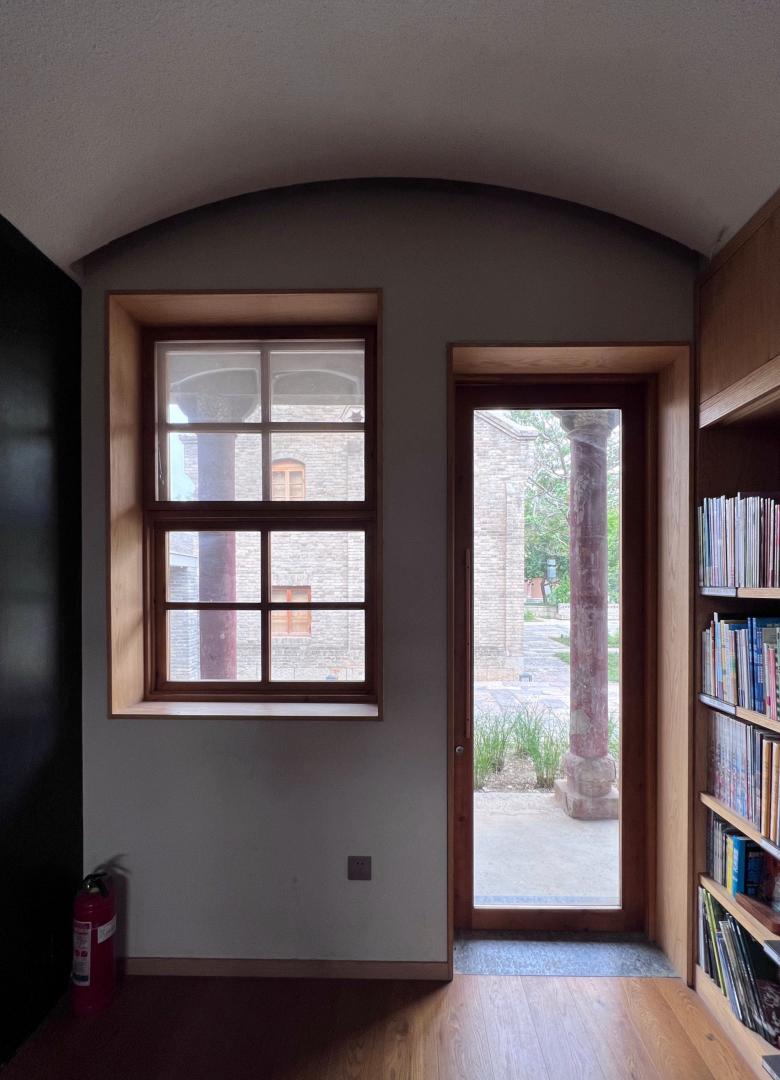 Internally, the building was adapted to accommodate the functions of a new bookstore and café. A longitudinal corridor, penetrating through bookshelf walls, was implemented to form a "fishbone" layout. This spatial arrangement effectively divided the well-lit areas into distinct semi-private spaces using bookshelf partitions, catering to different user groups. (Henan, 2020) (Photo: Zhu Rui, Zuo Jing Studio, Approach Architecture Studio)