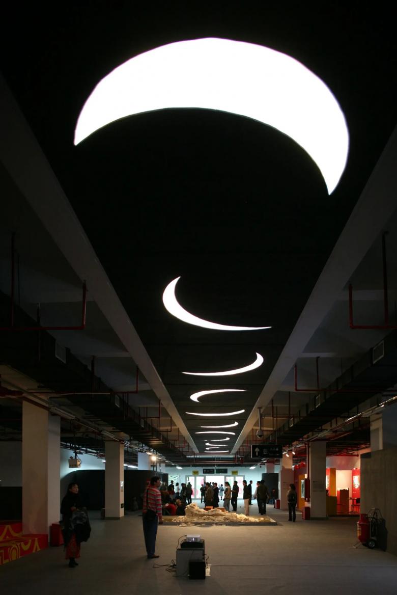 The exhibition space design for the 2009 Shenzhen Biennale was a highly challenging task. Located in the underground space and open city square of Shenzhen Civic Center, the exhibition spaces were non-traditional and posed various design challenges. The exhibition showcased a diverse range of exhibits, predominantly composed of on-site installation works. The design aimed to achieve the necessary spatial qualities and sufficient visual features for the exhibition with minimal cost, while also controlling the mutual interference between exhibits and maintaining a meaningful dialogue between them.
