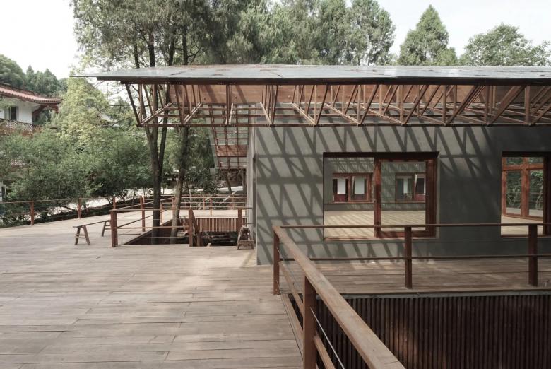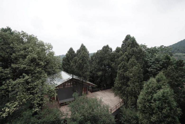 The Baoguo Temple Zen Center is located in a Buddhist temple in Ziyang, Sichuan, which can be traced back to the Sui Dynasty. The original site was a tea pavilion surrounded by cypress trees. The meditation center aims to maximize the use of the surrounding scenery of trees and create a place for monks and believers to meditate together.