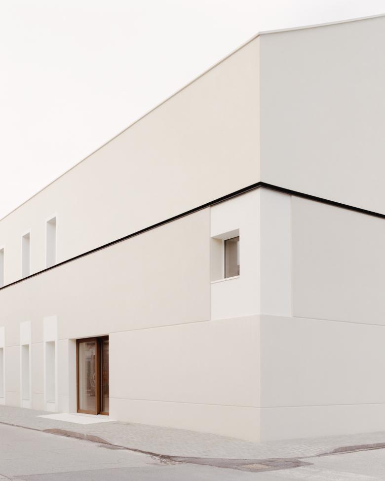 The two-storey building, along the longitudinal axis redefinesthe road axisthat comes to the church while on the shorter side it is configured as the entrance front to the town.