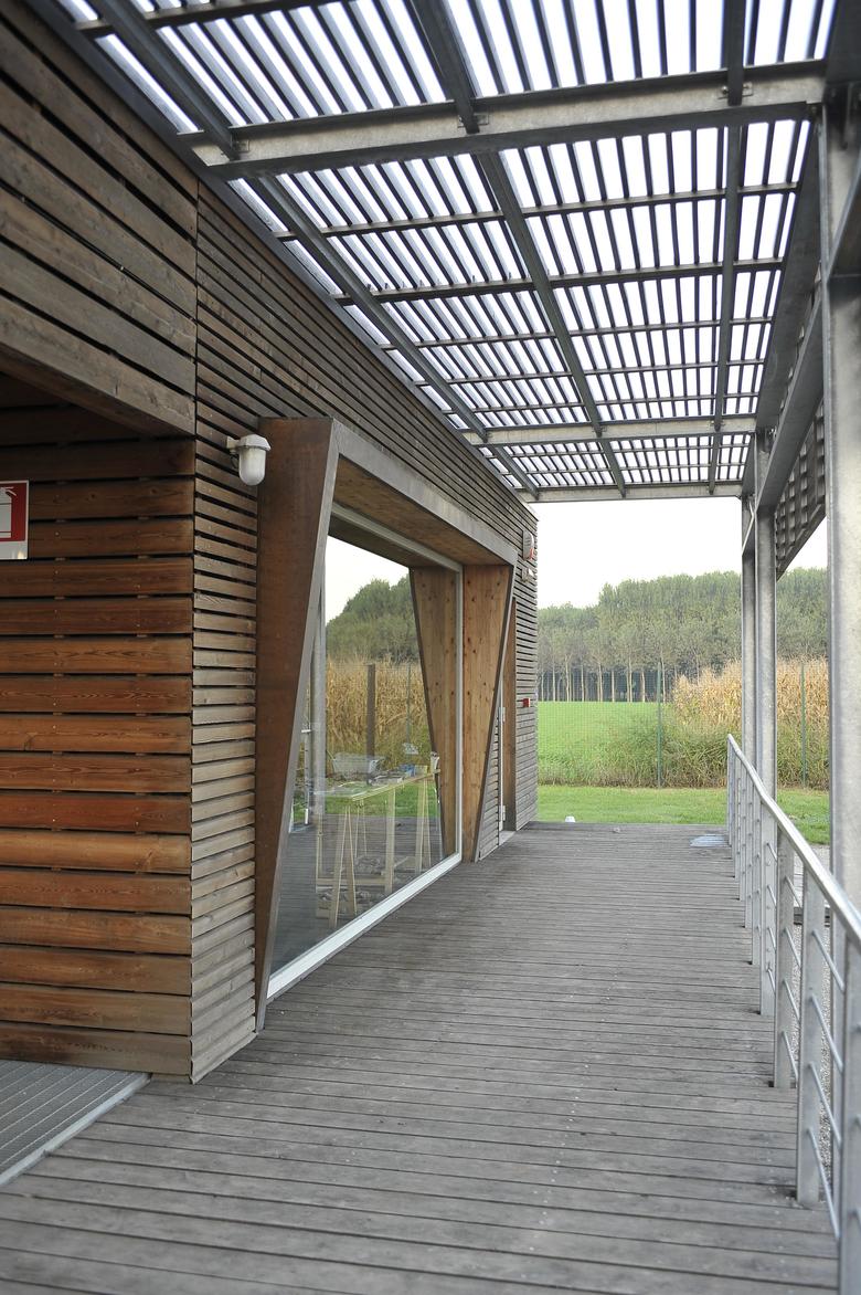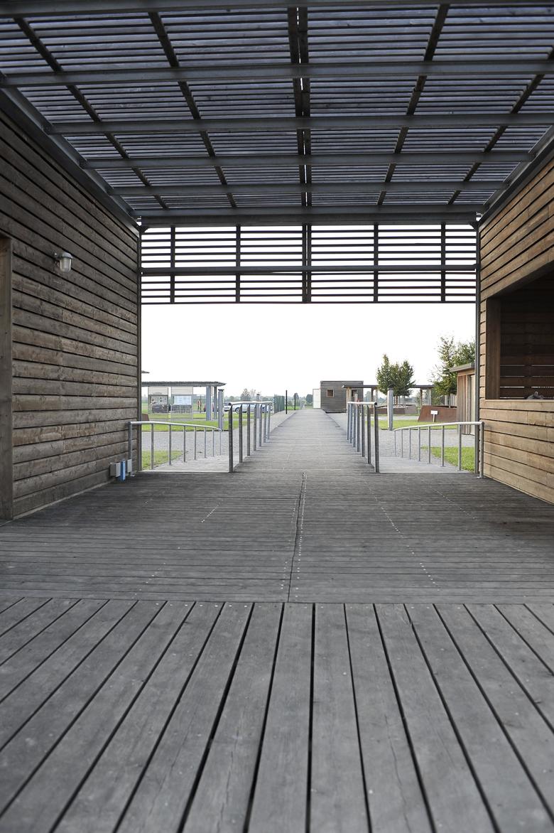 The architecture of the Archeological Museum is purpose-designed with lightweight constructions and shallow foundations due to the archaeological finds located in the area. The use of wood allows for load reduction and makes the huts easy to move as the excavation work shifts. The linear composition of the system is inspired by the Euclidean geometry of the archaeological site. Simple colours and volumes blend silently into the landscape.