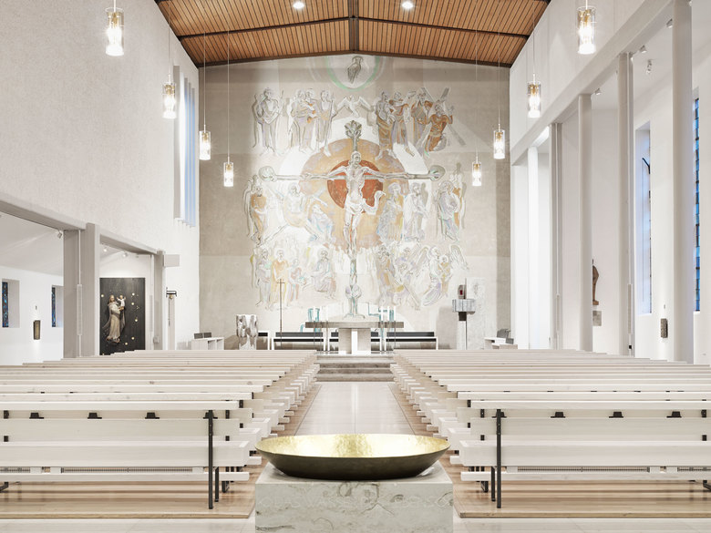 The church of the year 1954 (Philip Olkus) was renovated and new equipped. The liturgical places were planned over and positioned. Liturgical equipment was designed and positioned.