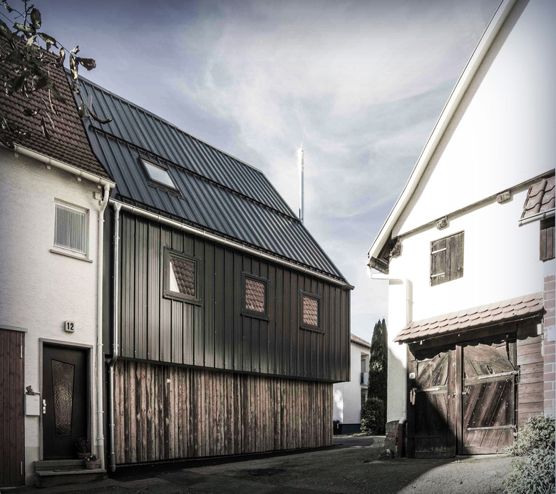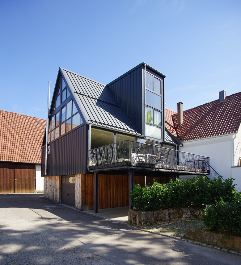 Die Anordnung des alten Bauernhofes wurde nachverdichtet und neu formuliert. Der wertvolle Ortscharakter wurde erhalten, das angrenzende Neubaugebiet musste einen anderen Weg gehen.