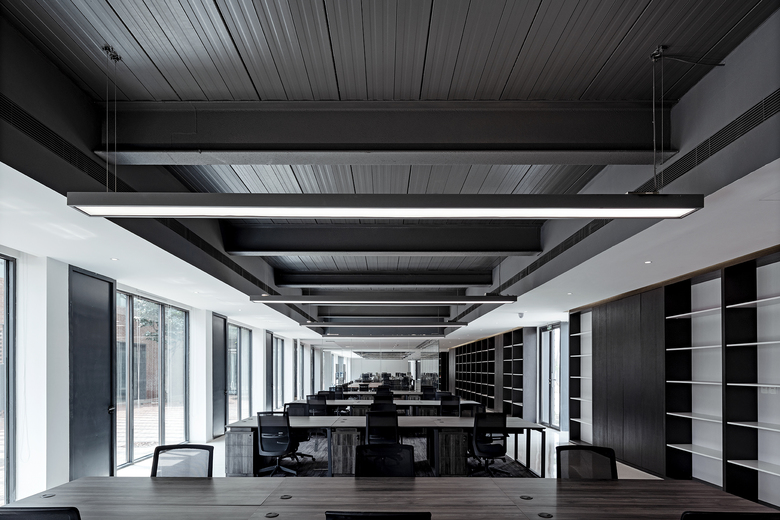 The architecture is 85 meters long and 50 meters wide, stretching in east-west direction on a site of about 8,000 square meters. Considering the site is relatively large, ARCHSTUDIO planned the layout of architectural spaces by incorporating courtyards, and created various indoor and outdoor scenes based on functional needs and circulation routes, thereby produced a light-filled, green and vigorous working environment.