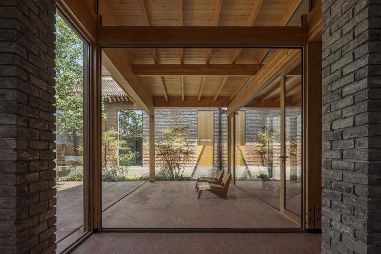 The project is located in an ordinary village on the outskirts of Beijing, a typical plain-based northern Chinese village mainly composed of one- and two- storey courtyard houses. Most houses in the village face south, and feature red bricks and tiles. Besides, there are also various added constructions built independently by local villagers for meeting their changing living needs, such as shanties with colored-steel roof or glass roof, which blend with the natural fabrics of the village.