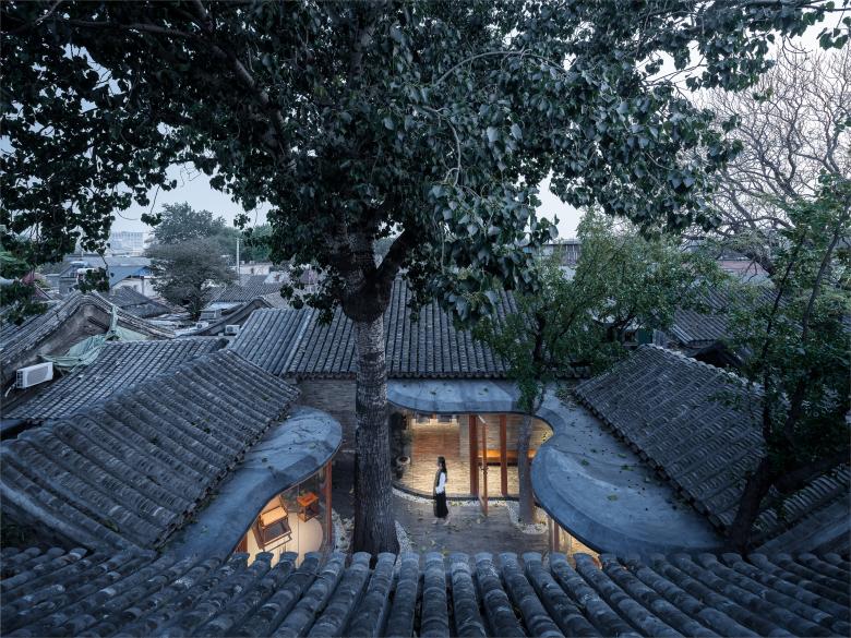 ARCHSTUDIO embedded a veranda — a basic element of traditional Chinese architectures, into the old Siheyuan to link up the seven separated pitched-roof houses. The veranda functions as a circulation route, reshapes the spatial pattern and layers, and provides a playful walking experience as well as fantastic views.