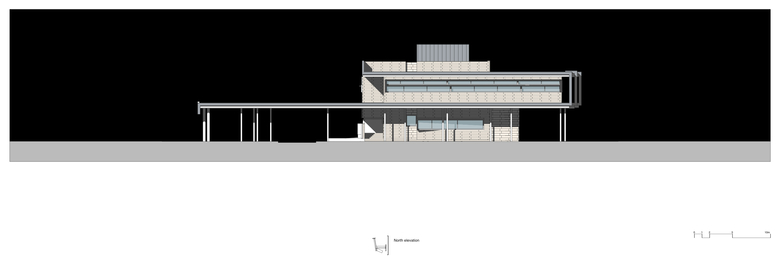 In its construction the Blood Bank is layered in different raw materials: local granite touching the ground, galvanized steel for the skin, industrial glass for the windows, roof zinc and plywood.