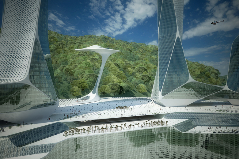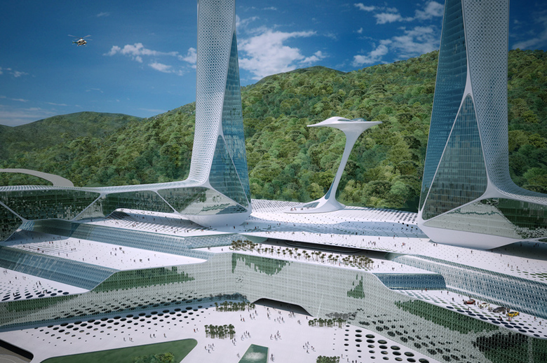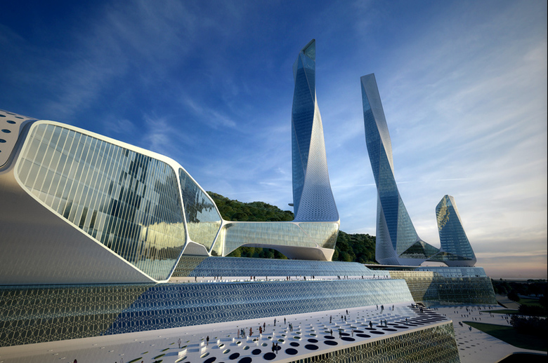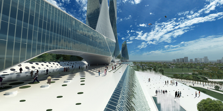The design of the Penang Global City Center (PGCC) was unveiled on September 12, 2007 in Penang, Malaysia in a ceremony conducted by Malaysian Prime Minister Abdullah Ahmad Badawi. Asymptote’s design for the PGCC comprises two iconic, sixty-story towers housing luxury residential units and five-star hotels, the Penang Performing Arts Center (PenPAC), a high-end retail and entertainment complex, an observatory, a world-class convention center and a vast public arena in the form of a plinth that serves as an entrance to the PGCC and connects it to the city beyond.