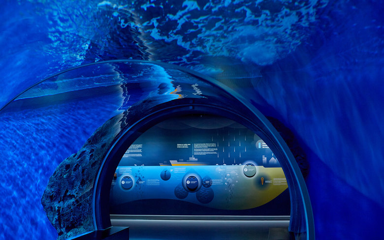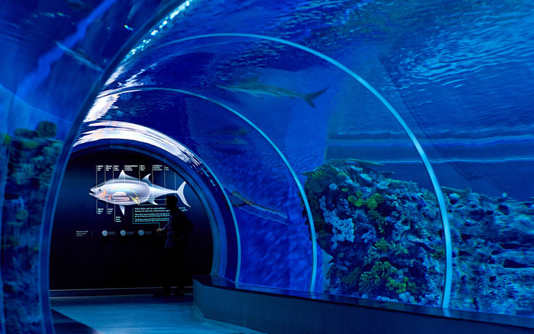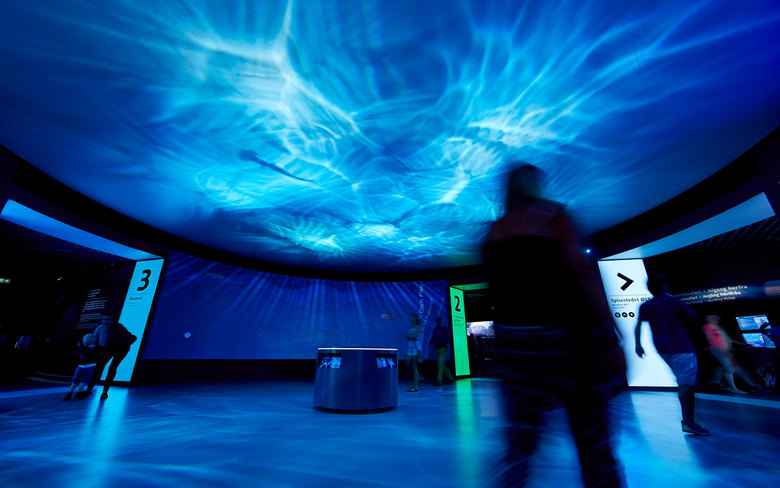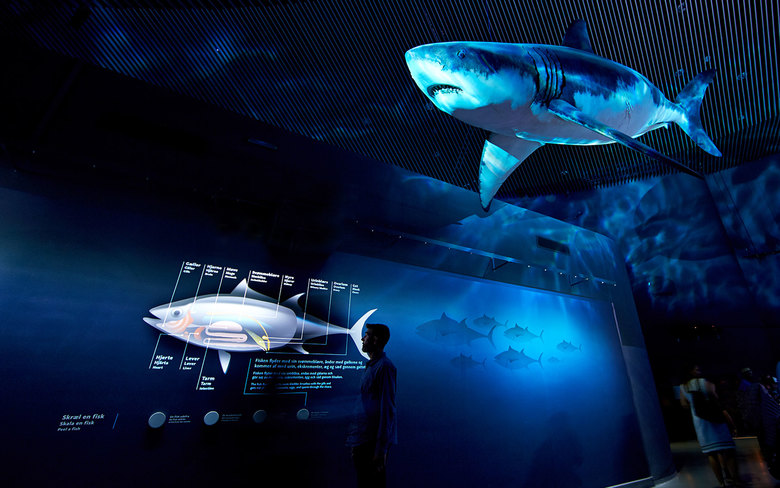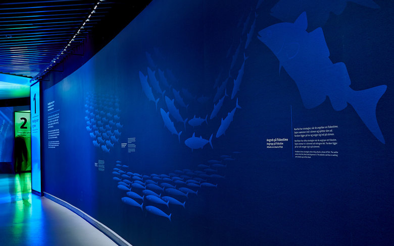 'Den Blå Planet' is one of Denmark's main attractions. The biggest aquarium in Northern Europe has been graphically reconfigured, whereby a new approach to the contents has been taken. The new appearance is characterised by a subtle form of presentation, which permeates all the different levels of information in the building. The visitor is immersed in the fascinating water worlds of our blue planet. Thousands of fishes and marine animals can be observed here: A swirling museum experience.