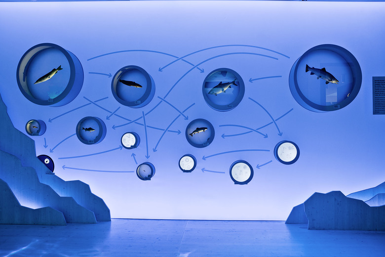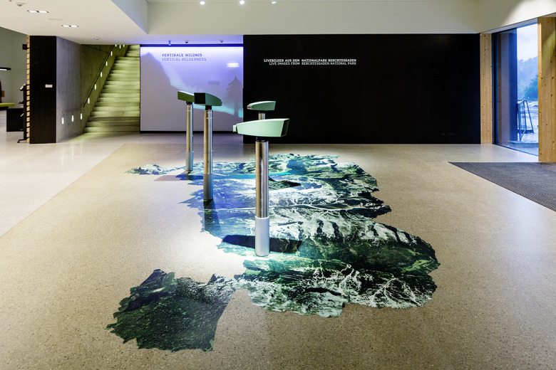 The main topic of the exhibition in Berchtesgaden is the highest vertical of the Eastern Alps. It is a virtual line of 2300 m from the bottom of the Königssee to the peak of the Watzmann. The accessible and interactive landscape panorama leads the visitor through four alpine habitats: »Water and Valley«, »Forest and Animals«, »Pastures and Alpine Meadows« and »Rock and Air«. Interwoven is a time travel from the formation of the mountains to the consequences of global warming today and in the future.