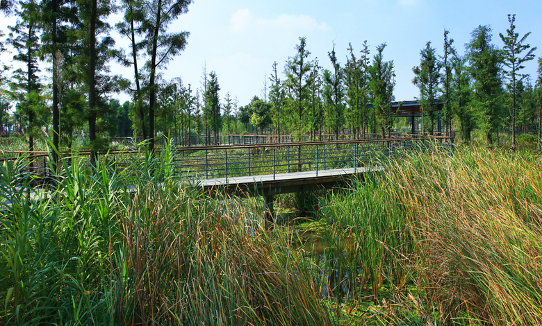 In the context of rapid urbanization and industrialization, Wuxi urgently needed expand its urban area, and Taihu New Town is the product of this demand. Taihu Lake New Town is located in southeastern Wuxi, and its core provides administration, finance, business and other public service functions. Shangxianhe Wetland Park, about 4 kilometers in length and 210hm2 in area, lies on the central axis of Taihu Lake New Town and links Municipal Administration Center (MAC) in the north with Taihu Lake in the south.