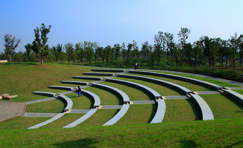 Wetland Park Zone, located in the center of Taihu Lake New Town, is mainly for people’s leisure. With New Town CBD on the west, wide waterfront promenade, yacht docks and sports fields are set in the west bank, providing convenient, comfortable places for visitors and residents’ relaxation, entertainment, exercise and recreation. The east shoreline is a smooth curve, and some mounds and waterfront amphitheaters are nestled into the designed landforms, shaping quiet and pleasant social engaging spaces in woodlands.