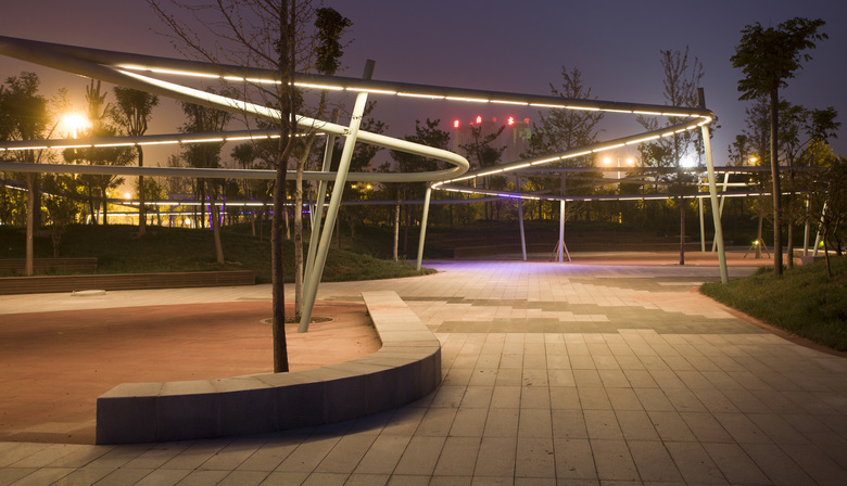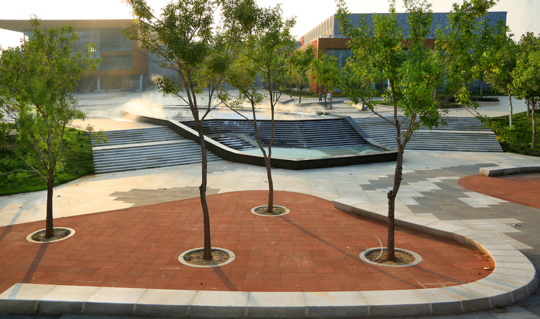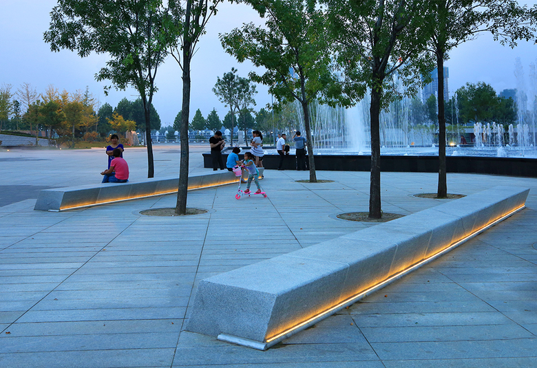 The plaza is a stage of civil life. Spatial organization and beautiful lighting allow the plaza being used all day long. Activities such as large show, exercise square dance, ramble, rest and communication, and so on are all available.