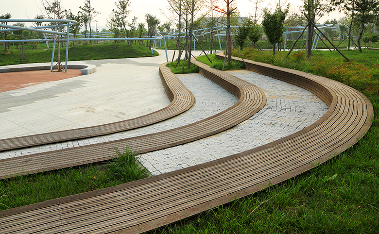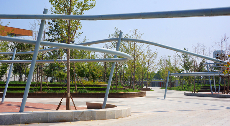 A series of green islands separate the large-scale site into several different human-scale spaces with different functions, landscapes and elevation changes. These green islands also connect Qinglongshan Hill and its plants, and create a visual combination between the hill and the plaza. Green islands improve green space and microclimate, and make the plaza look more natural. The green islands and the rainwater gardens at the foot of the mountain collect the rainwater and runoff from both hill and plaza, which improve the plaza’s ecological function.