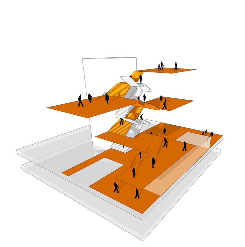 The main requirement of the competition was to combine two existing secondary schools in one location and complementing the program with a new music school and an additional gym. The surrounding area of the school is characterized by an extreme heterogeneous development, with a wide range of buildings with various functions and styles.