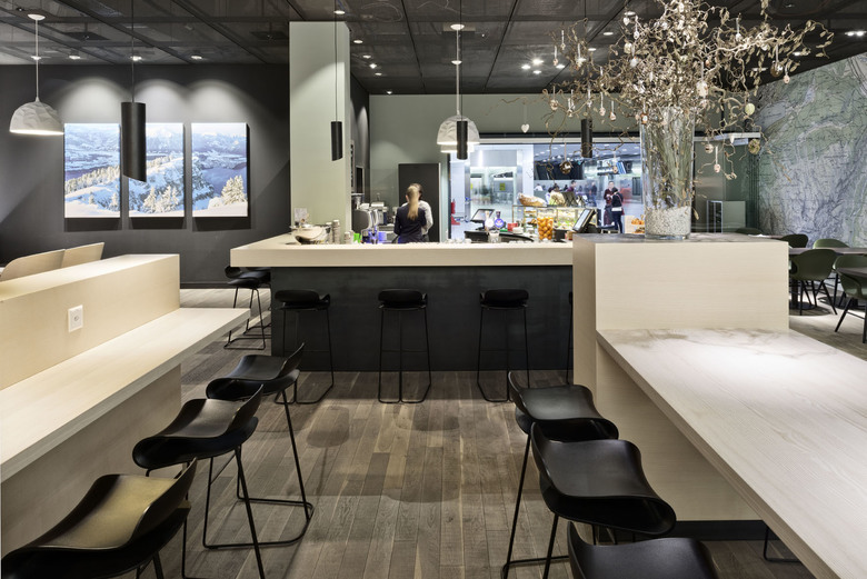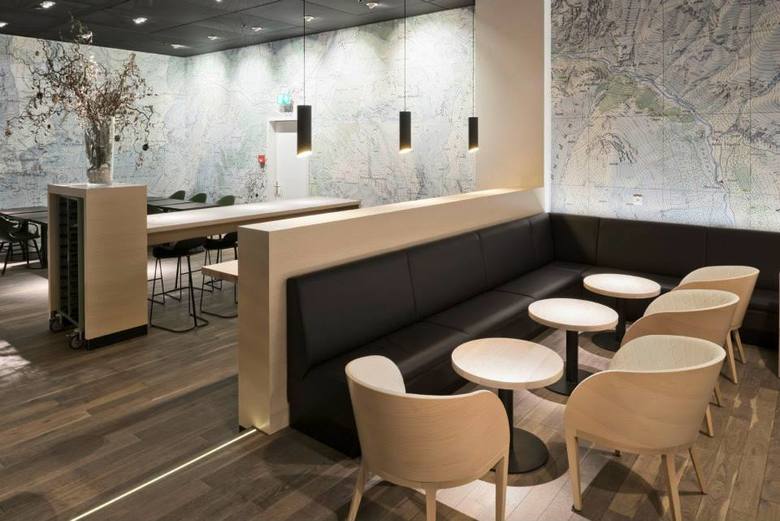 Als Grundlage für das Entwurfskonzept steht das Bild einer modernen Schweiz, offen, freundlich, selbstbewusst und auf Ihre Art einmalig. Die Topografie, welche dieses Land so unverwechselbar macht und sich dem ankommenden Fluggast bereits im Landeanflug präsentiert, prägte von Anfang an den Entwurfsgedanken. Die bewusst reduzierte Materialisierung gibt der zeitgemässen Möblierung genügend Raum in Erscheinung zu treten und damit den Gedanken einer weltoffenen Helvetia zu unterstützen.