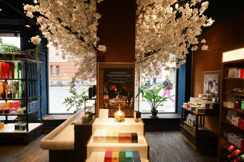 A two-story retail space was created for Rituals at ground and first floor levels in line with the corporate design requirements of the beauty specialists: Dark, earthy colors and natural materials such as timber, stone, and glass create a warm, feel-good atmosphere. This reduced palette optimizes the presentation of the products: With their powerful, fluorescent colors and the targeted lighting they become an eyecatcher for customers.