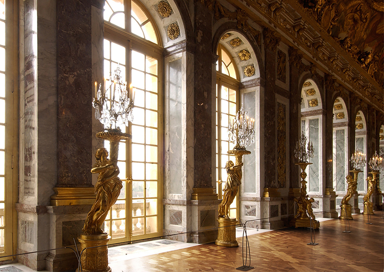 Person guidance system within the Hall of Mirrors in the Palace of Versailles