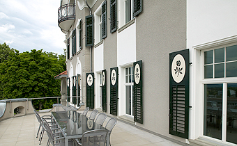 Die Villa Schmidheiny erscheint von aussen als ein grösseres Haus. Dass darin problemlos sieben normale Einfamilienhäuser Platz hätten, glaubt kein Mensch… ein würdevolles Haus, das sich weder Modeströmungen noch Megatrends zu beugen braucht. Herrlich, dass derartige Bauwerke in ihrer Ursprünglichkeit weiter bestehen, und ihre Wurzeln in der vor 100 Jahren angelegten Umgebung immer tiefer graben dürfen.