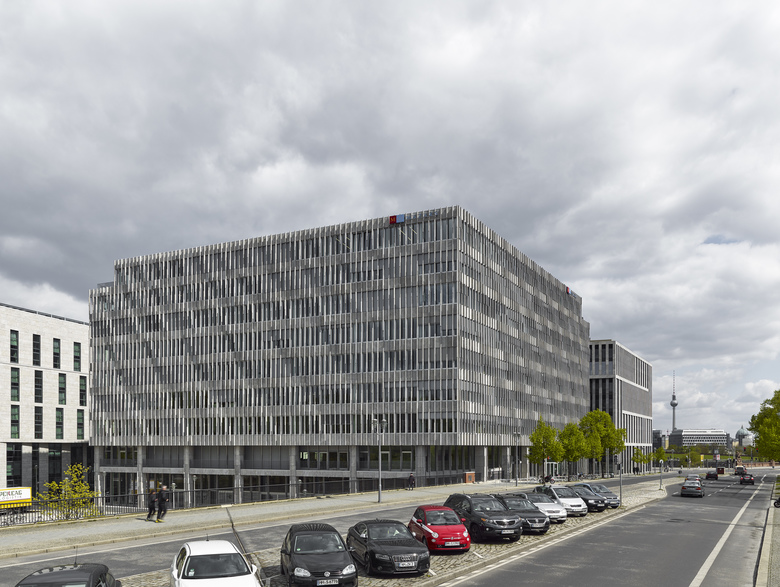 In der Bertha-Benz-Straße unmittelbar südwestlich des Berliner Hauptbahnhofs und gegenüber des Neubaus für das Bundesministerium des Inneren entstand als vierter und letzter Baustein des so genannten ‚Lehrter Stadtquartiers‘ ein neungeschossiges Bürogebäude mit gut 25.000 m2 BGF. Das Haus steht im direkten Dialog mit den drei anderen Bausteinen des Ensembles, für das klare Regeln zu Gebäudeform, Höhe und Materialität vorgegeben waren. Gleichzeitig erhält es durch seine Fassade aus filigranen Naturstein-Finnen ein eigenständiges, elegantes Erscheinungsbild.