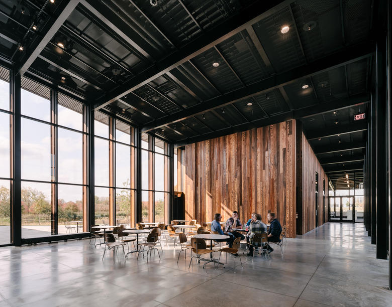 The architecture also surprises: with a robust and elegant steel-glass construction with Corten steel cladding, it connects the suburban “strip” – characterized by fast food culture, shopping centers and gas stations – with the design language of local campus and industrial buildings by Albert Kahn and Ludwig Mies van der Rohe. Here, the history of the “Rust Belt” as the oldest and largest industrial region in the USA is brought together with computer-controlled high-tech production; functionality meets representation, and pragmatism meets refinement.